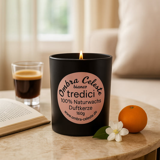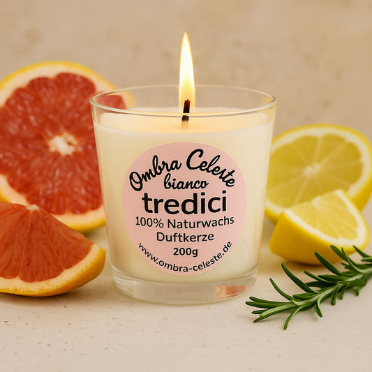 Unsere handgemachte Naturwachs Duftkerze Tredici ist eine Hommage an die Schönheit und das Lebensgefühl Italiens.